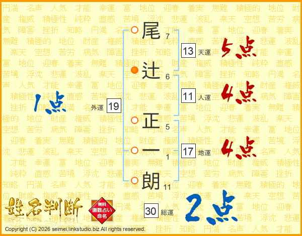 尾辻正一朗さんの総運は30画の2点!