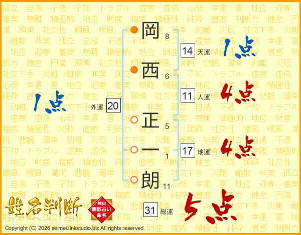 岡西正一朗さんの人運は11画の4点!