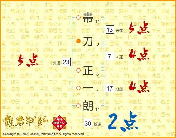 帯刀正一朗さんの総運は30画の2点!