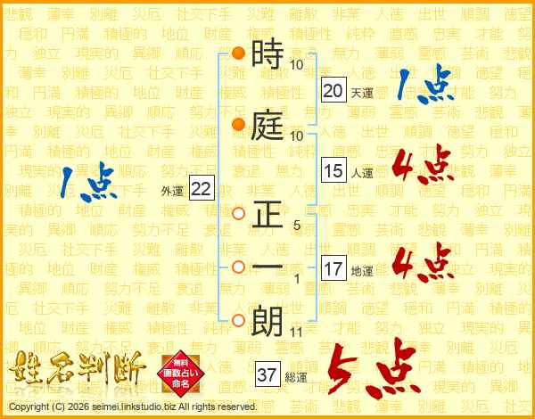 時庭正一朗さんの総運は37画の5点!