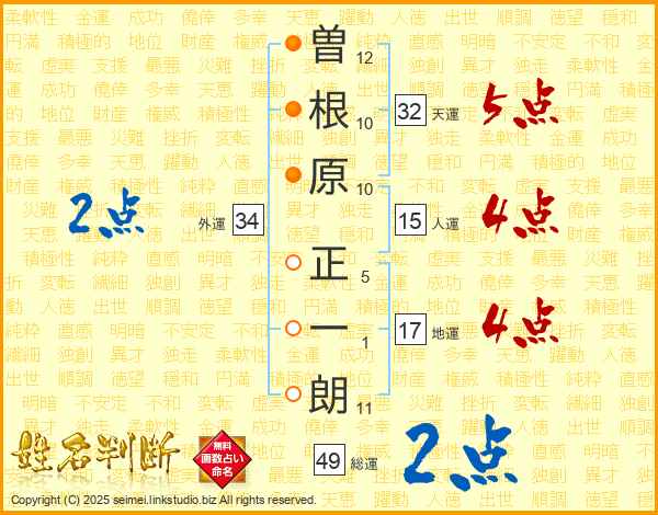 曽根原正一朗さんの天運は32画の5点!
