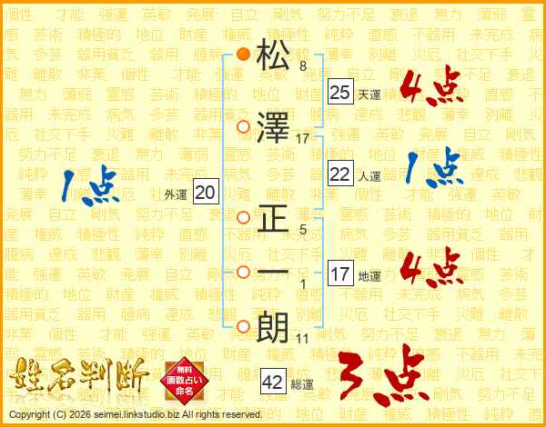 松(8画)澤(17画) 正(5画)一(1画)朗(11画)