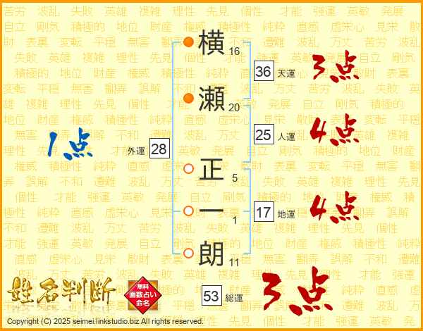 横瀬正一朗さんの総運は53画の3点!