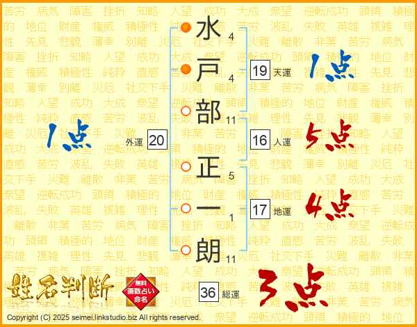 水戸部正一朗さんの総運は36画の3点!