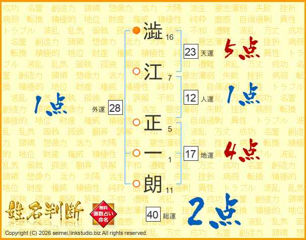 澁江正一朗さんの総運は40画の2点!