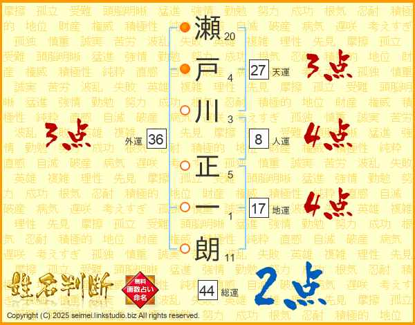 瀬戸川正一朗さんの総運は44画の2点!
