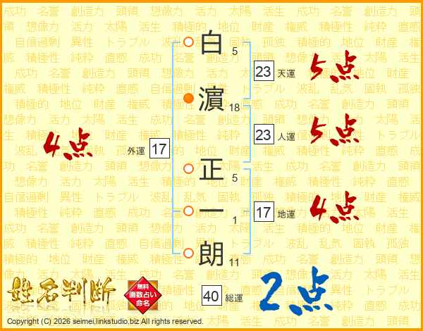 白濵正一朗さんの人運は23画の5点!