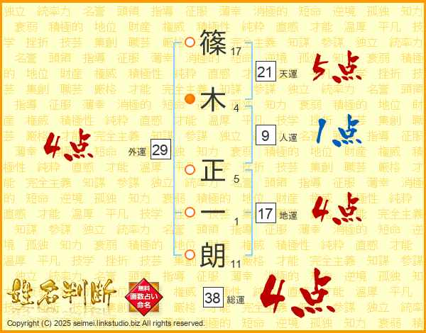 篠(17画)木(4画) 正(5画)一(1画)朗(11画)