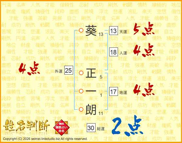 葵正一朗さんの総運は30画の2点!