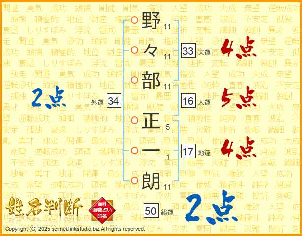 野々部正一朗さんの天運は33画の4点!