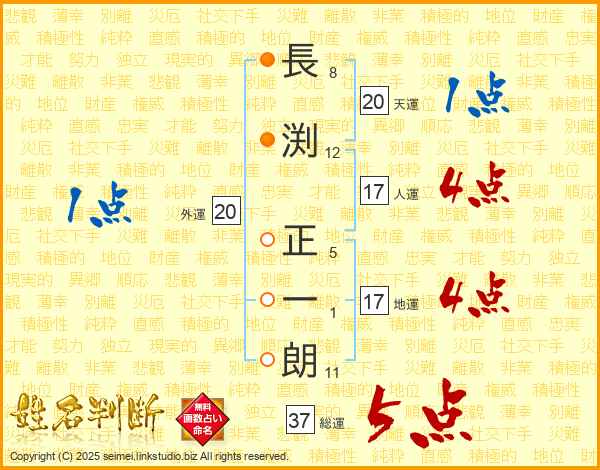 長渕正一朗さんの総運は37画の5点!