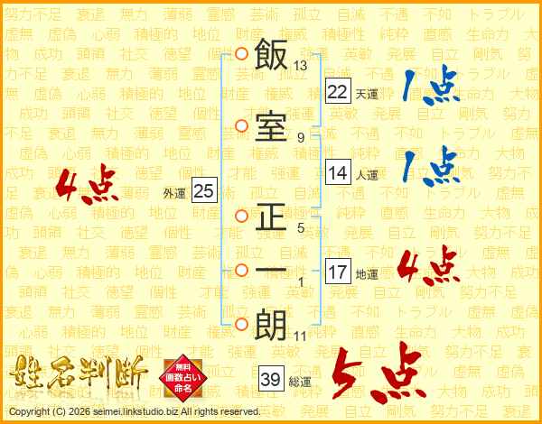 飯室正一朗さんの総運は39画の5点!