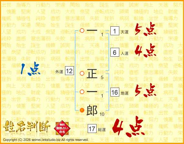 一正一郎さんの総運は17画の4点!