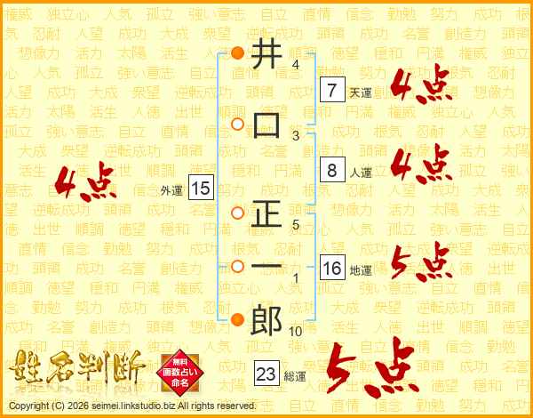 井口正一郎さんの総運は23画の5点!
