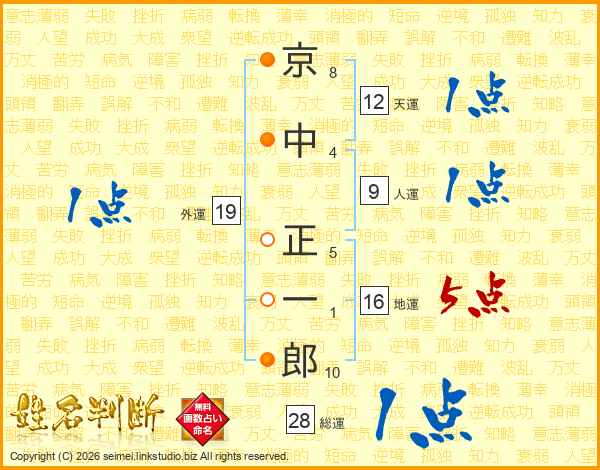 京中正一郎さんの総運は28画の1点!