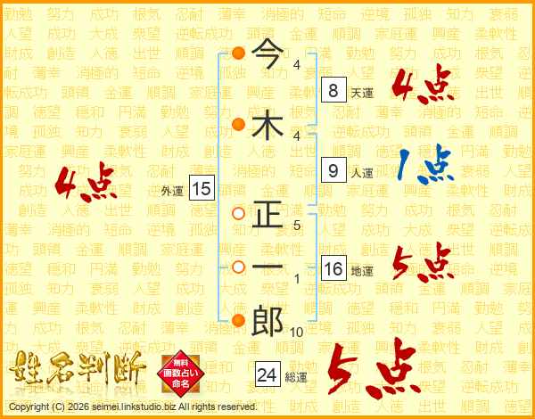 今(4画)木(4画) 正(5画)一(1画)郎(10画)