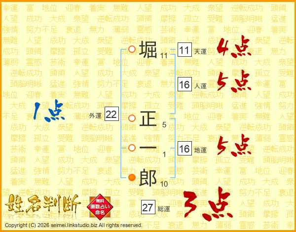 堀正一郎さんの総運は27画の3点!