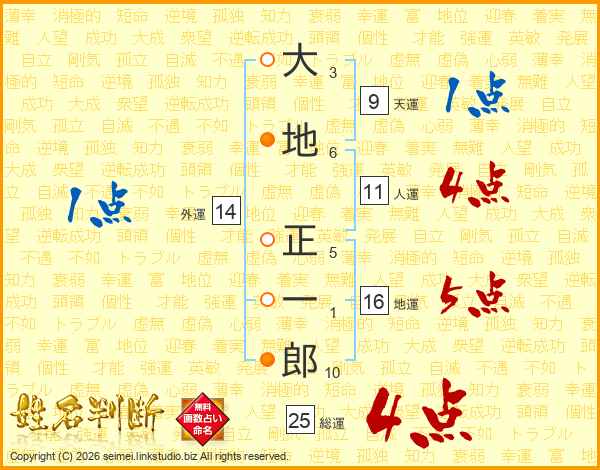 大地正一郎さんの人運は11画の4点!