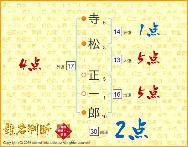 寺松正一郎さんの人運は13画の5点!