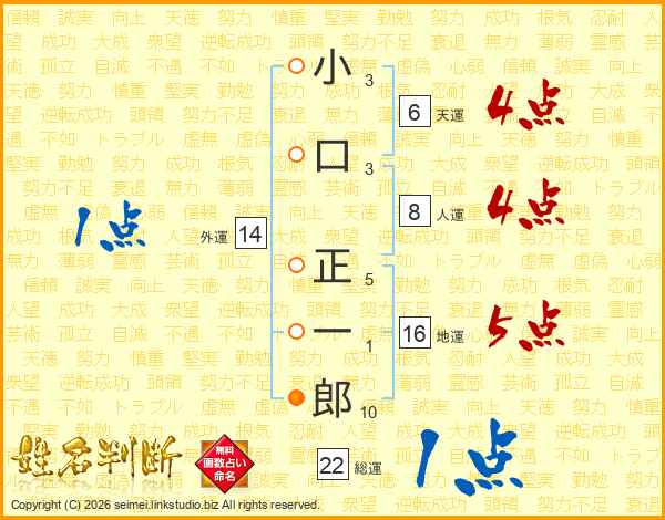 小口正一郎さんの総運は22画の1点!