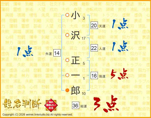 小(3画)沢(17画) 正(5画)一(1画)郎(10画)