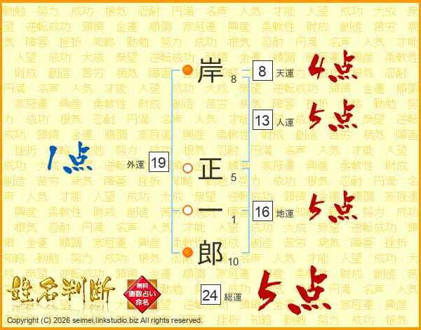 岸正一郎さんの総運は24画の5点!