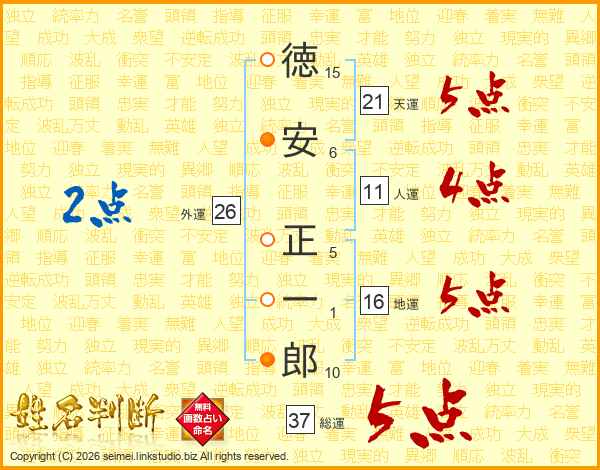 徳(15画)安(6画) 正(5画)一(1画)郎(10画)
