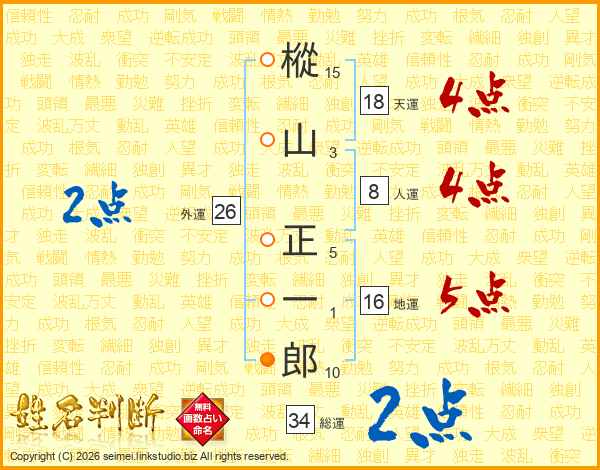 樅(15画)山(3画) 正(5画)一(1画)郎(10画)