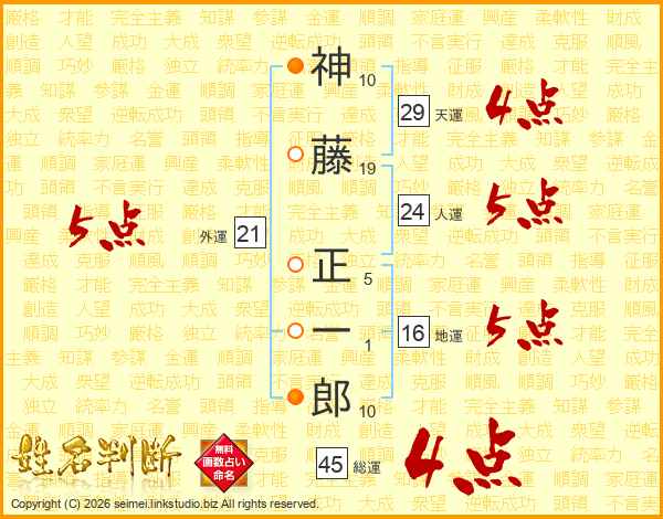 神(10画)藤(19画) 正(5画)一(1画)郎(10画)