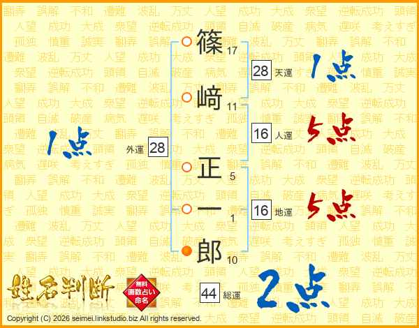 篠﨑正一郎さんの人運は16画の5点!