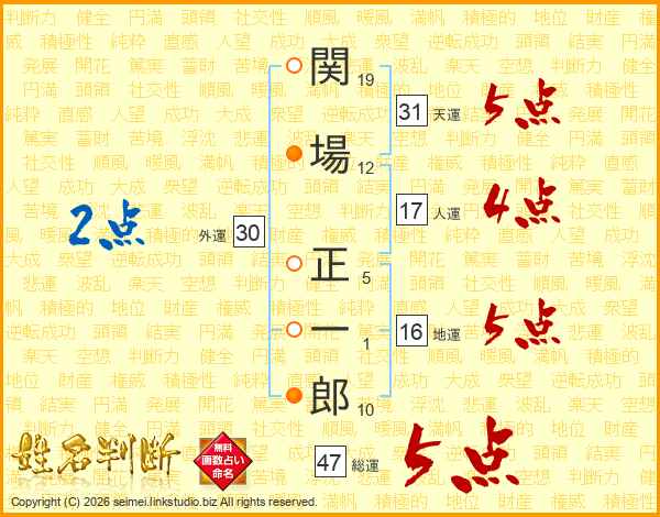 関場正一郎さんの天運は31画の5点!