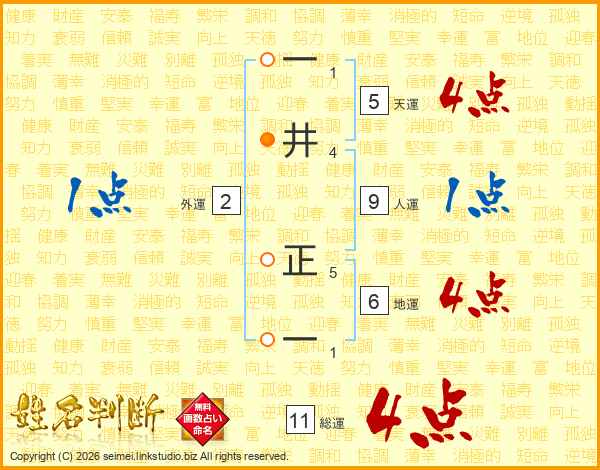 あなたの人生を表す1番重要な運勢です。生涯を通じて影響する総合運となり、主に50歳以降の晩年期に影響を及ぼします。苗字と名前の合計画数。