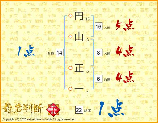 円山正一さんの総運は22画の1点!