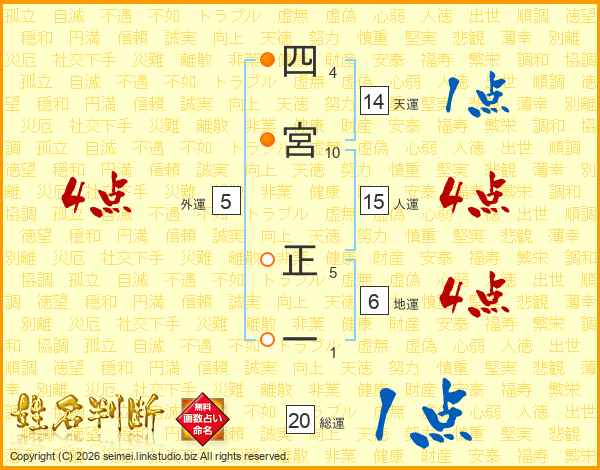 四宮正一さんの総運は20画の1点!