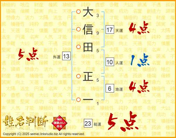 大信田正一さんの総運は23画の5点!
