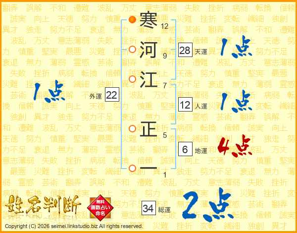 寒河江正一さんの総運は34画の2点!