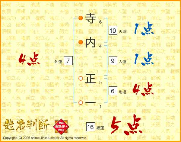 寺内正一さんの総運は16画の5点!