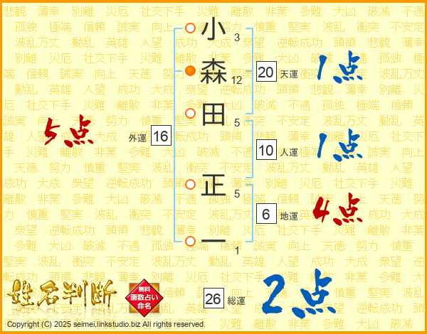 小森田正一さんの外運は16画の5点!