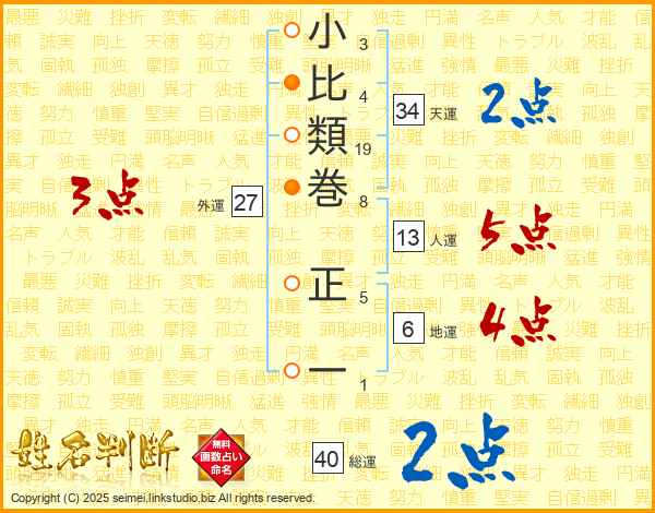 小(3画)比(4画)類(19画)巻(8画) 正(5画)一(1画)