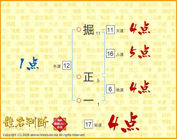 掘正一さんの総運は17画の4点!