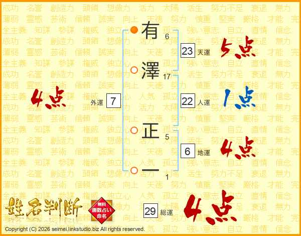 有澤正一さんの総運は29画の4点!