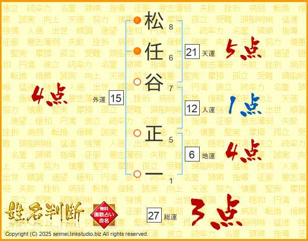 松(8画)任(6画)谷(7画) 正(5画)一(1画)