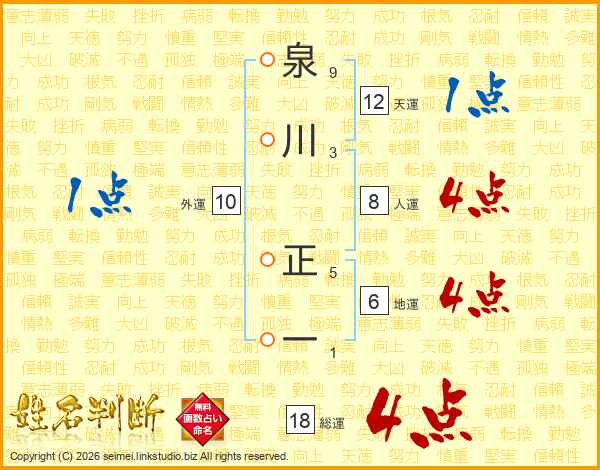 泉川正一さんの総運は18画の4点!