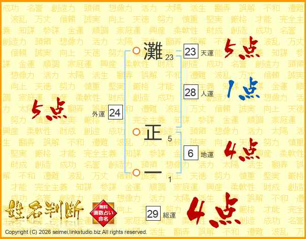 灘正一さんの総運は29画の4点!