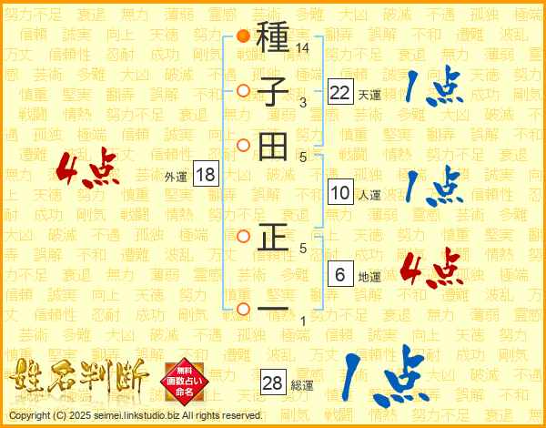 種子田正一さんの天運は22画の1点!