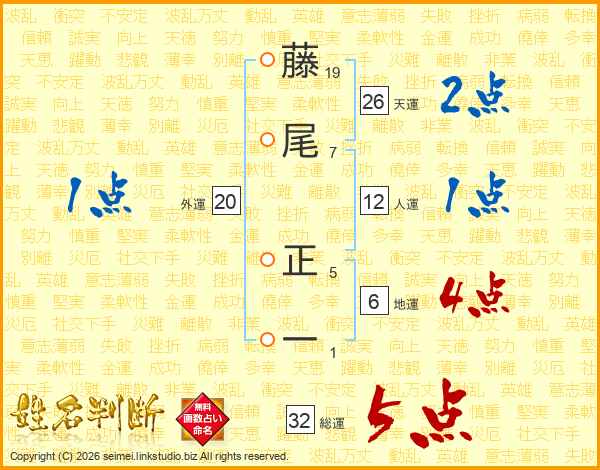 藤尾正一さんの総運は32画の5点!