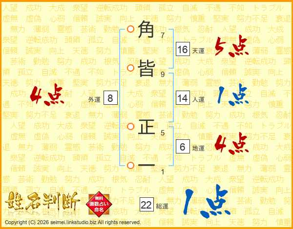 角皆正一さんの総運は22画の1点!