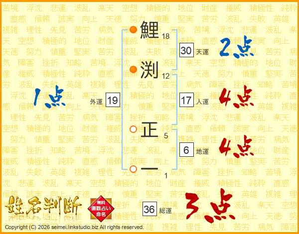 鯉渕正一さんの総運は36画の3点!