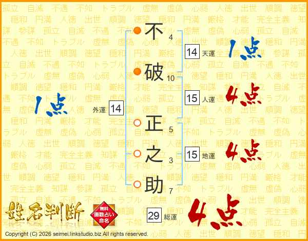不破正之助さんの総運は29画の4点!