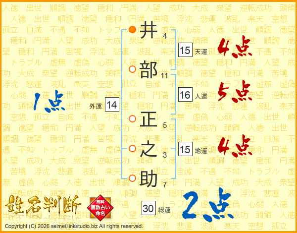 井部正之助さんの総運は30画の2点!